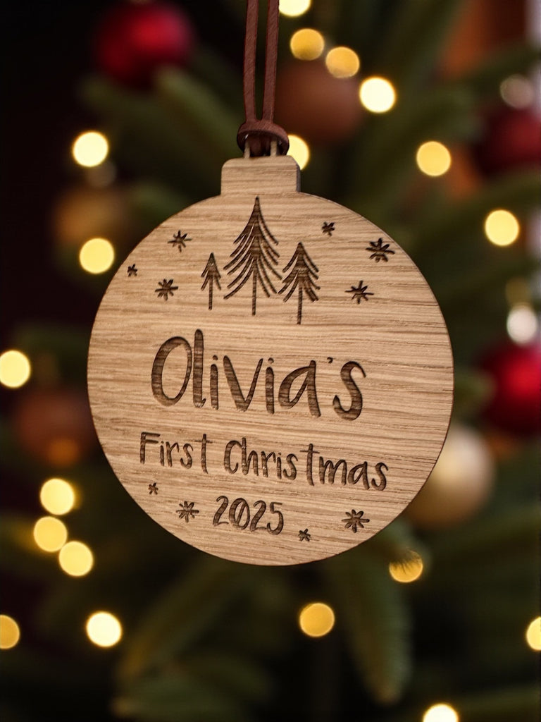 With the personalised detail engraved into the 4mm Oak Veneer this bauble will add a rustic, natural feel to your Christmas tree, and will serve as a wonderful keepsake for years to come.