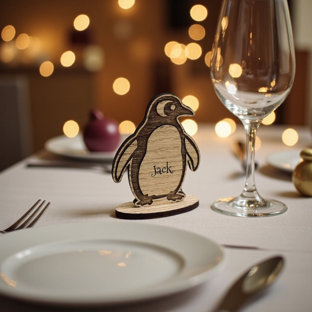 Bring a personalised fun touch to your Christmas dinner tables this winter season with our standing Penguin table setting decorations.
